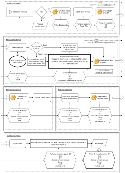 Récupération du véhicule tour avec client explication travaux (restitué le ?)